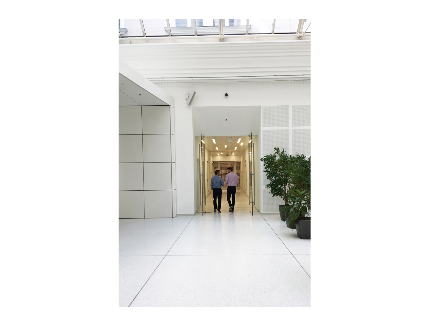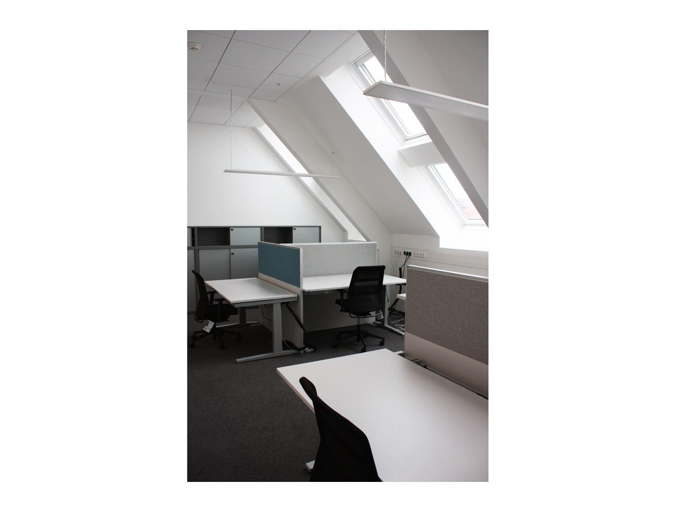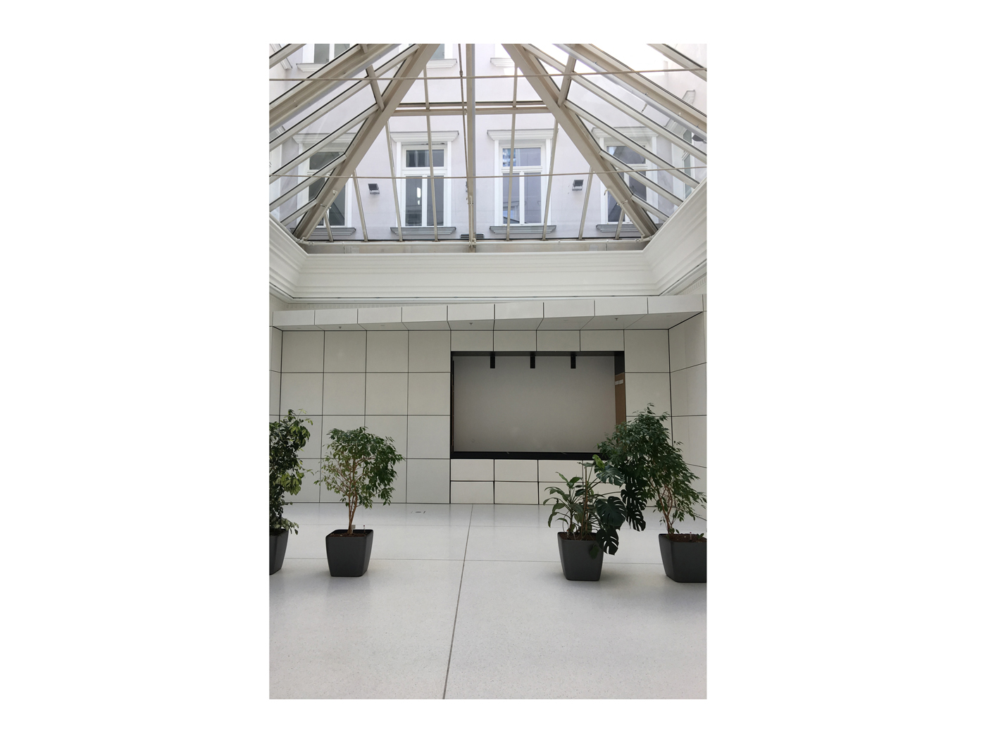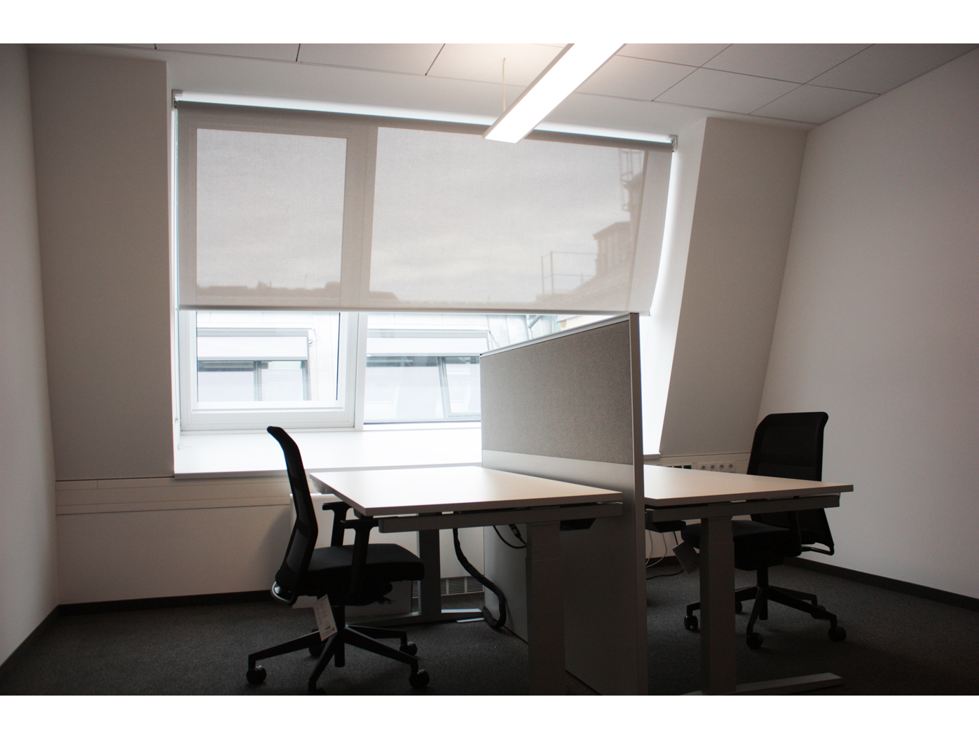 In den Obergeschossen strukturiert ein hexagonales Erschliessungs- system den Raum neu. Der umlauf- ende Gang mit seinen transparenten Bürowänden ermöglicht Blickbezieh- ungen und Tageslichttiefe, während variable Raumzuschnitte maximale Flexibilität gewährleisten. Der ausgebaute Dachbereich erweitert das Raumangebot und nutzt die bestehende Dachstruktur durch geschickt platzierte Fensterbänder. Besondere Sorgfalt erhielten die denkmalgeschützten Fassaden zum Ring und zur Maria-Theresien-Strasse, deren historische Substanz behutsam konserviert und durch einen neuen Anstrich revitalisiert wurde.