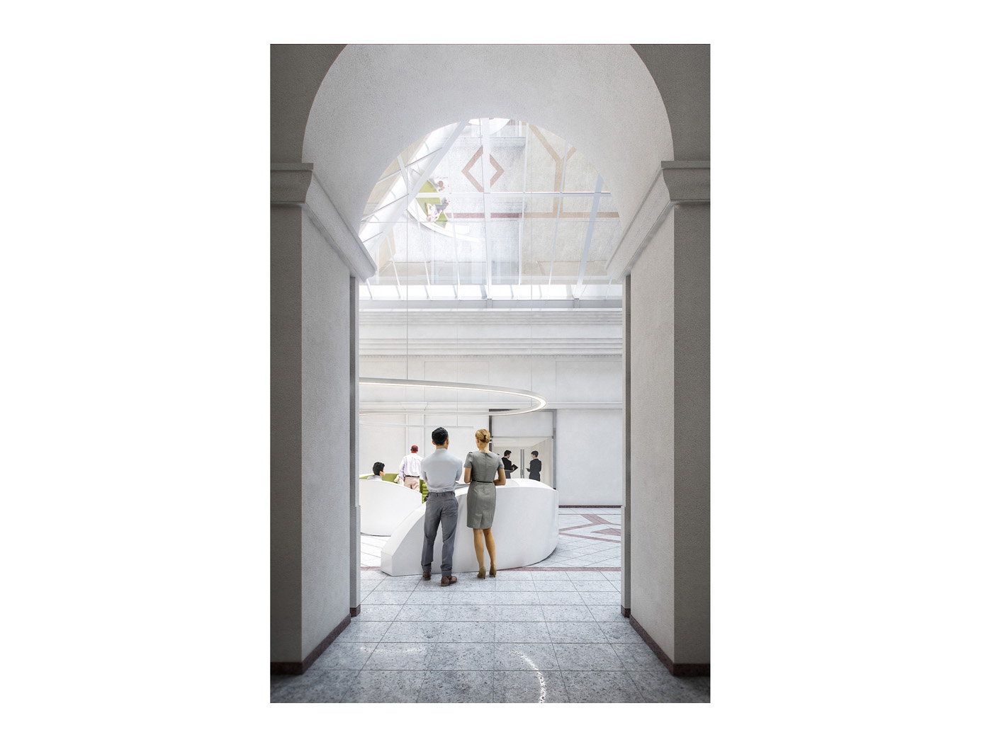 Das Pult-Eingangsfoyer der S-Versicherung, gestaltet von Rahu Architekten, überzeugt durch seine organische, S-förmige Linien- führung aus hochwertigem Corian. Dieser vielseitige Werkstoff ermöglicht nahtlose, geschwungene Oberflächen und verleiht dem Raum eine einheitliche, zeitlose ästhetik.
