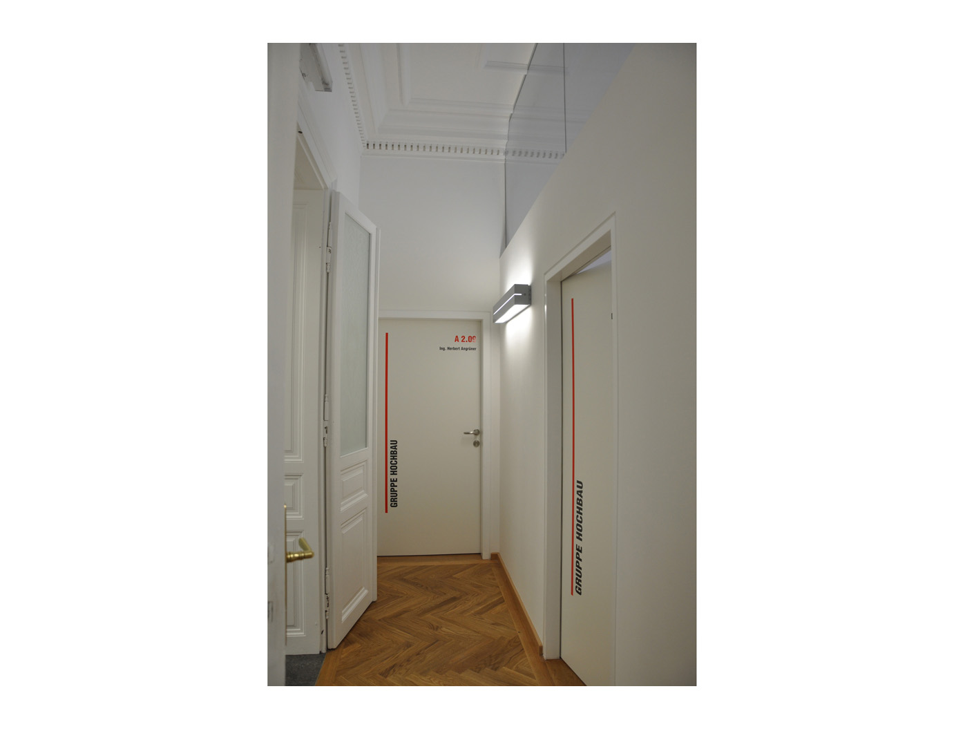 Das klassische Design des Gebäudes wurde behutsam mit zeitgenös- sischen Elementen ergänzt. Beson- deres Augenmerk liegt auf den ansprechend gestalteten Konferenz- räumen, die sowohl repräsentativen Charakter als auch eine angenehme Atmosphäre für Besprechungen bieten. Die Material und Farbwahl unterstreicht die Wertigkeit des Denkmals und setzt gleichzeitig neue Akzente.