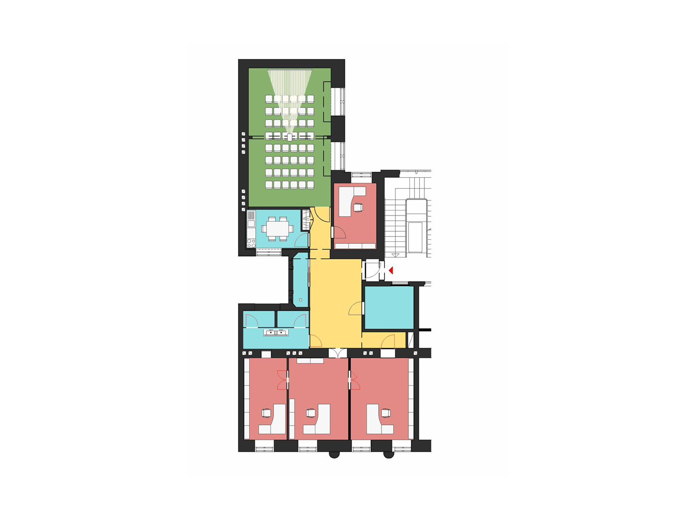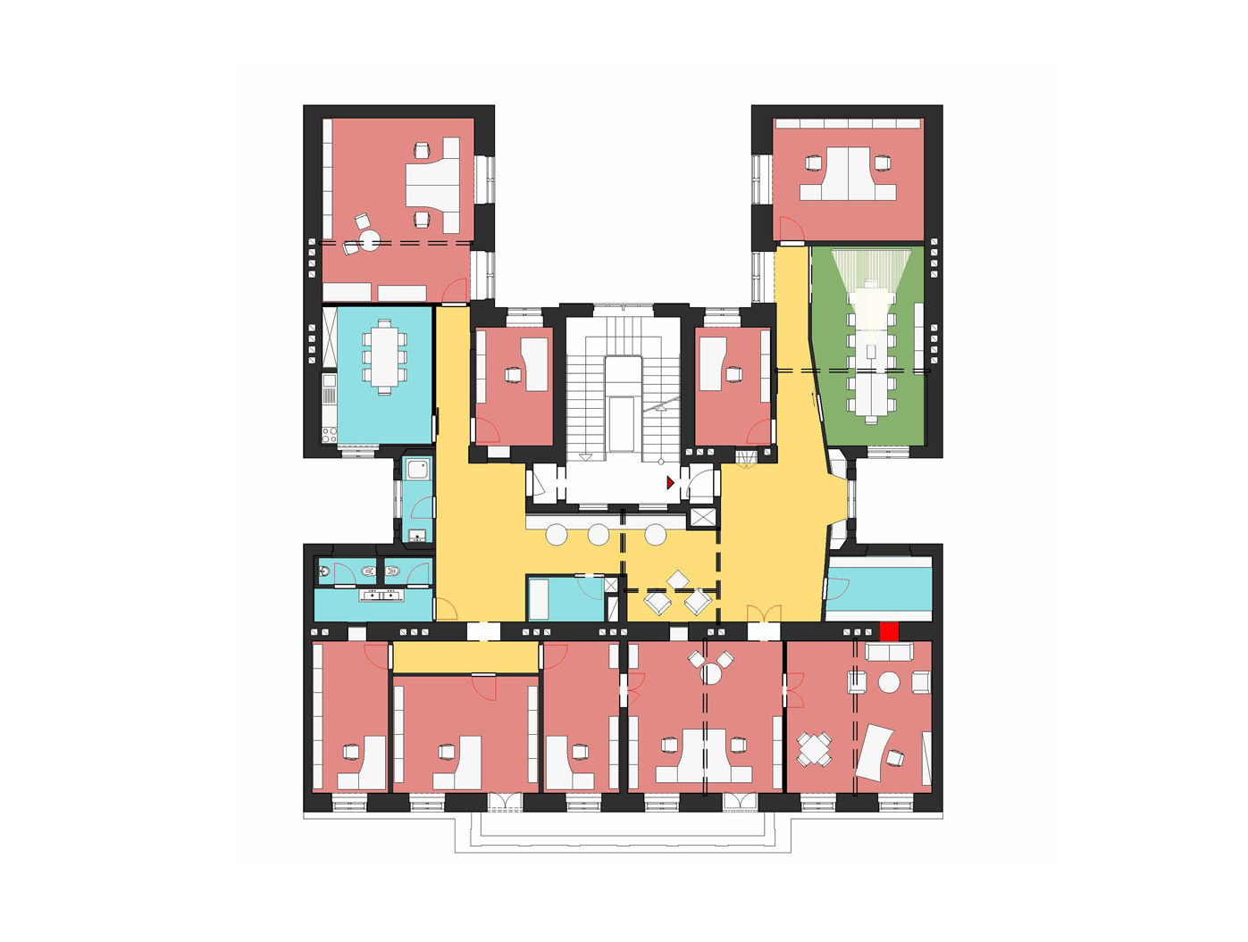 Dieses Projekt zeigt, wie historische Architektur durch eine sorgfältige Planung an die Anforderungen moderner Arbeitswelten angepasst werden kann, ohne ihren ursprüng- lichen Charme zu verlieren.