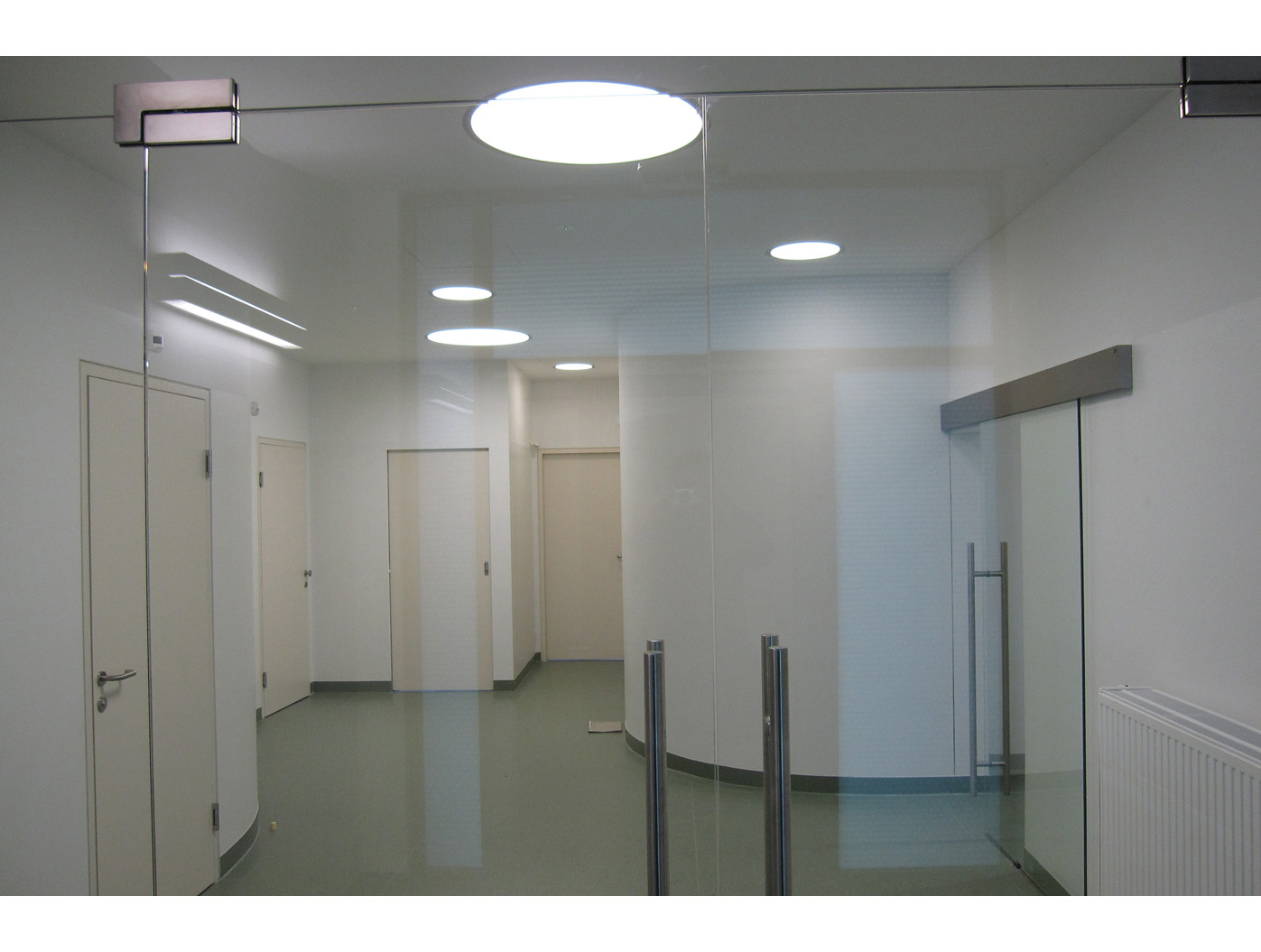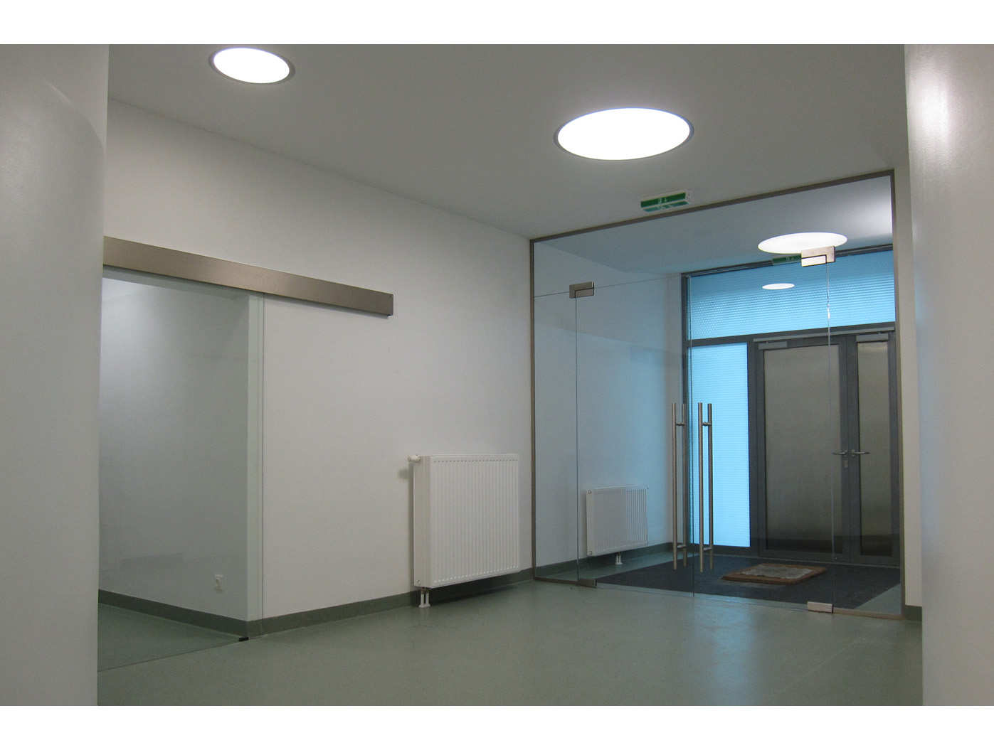 Das bestehende Mutter-Kind-Zentrum wird zu einem sensibel konzipierten Kriseninterventionszentrum umge- staltet. Die Architektur schafft dabei bewusst unterschiedliche Bereiche, die sowohl Funktionalität als auch Privatsphäre gewähr- leisten. Der vordere Gebäudeteil beherbergt die administrativen Funktionen mit Büro, Besprech- ungsraum und separatem Zimmer, ergänzt durch ein behinderten- gerechtes WC und eine Sanitärzelle für Betreuer. Diese Bereiche sind klar strukturiert und bieten eine professionelle Arbeitsumgebung.
