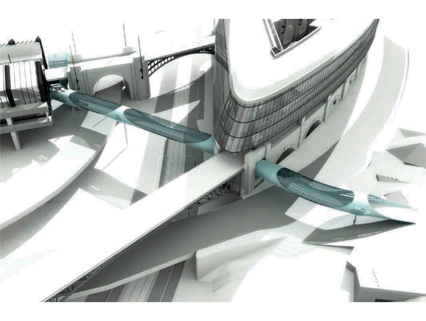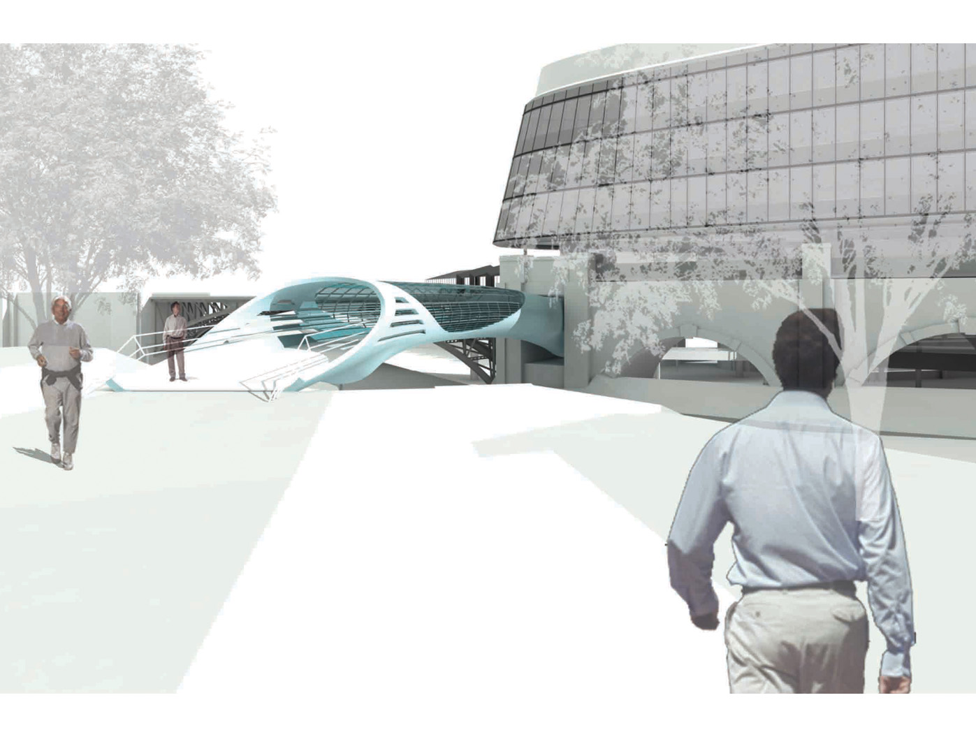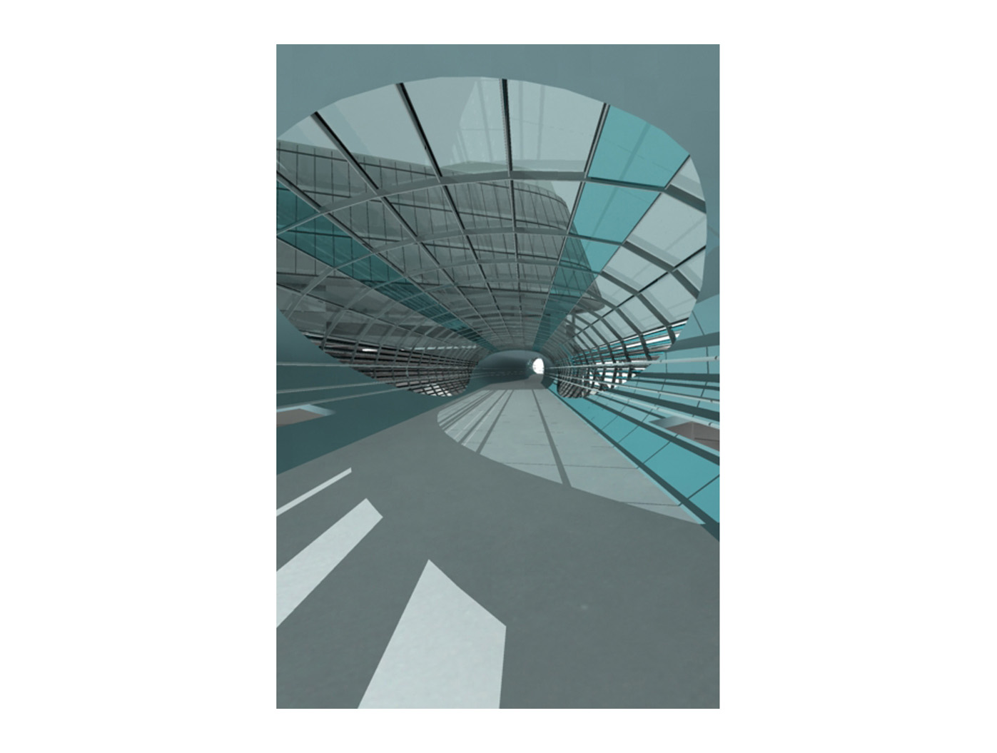Inmitten einer von Verkehrsadern durchzogenen Landschaft entsteht der Skywalk als elegante Lösung für eine zunächst rein funktionale Aufgabe: das Verbinden von Orten. Die Architektur antwortet auf die Herausforderung des Ortes mit einer dynamischen Formensprache, die sich aus dem Dialog mit den bestehenden Bewegungslinien ent- wickelt. Mehr als nur eine über- querungshilfe wird der Skywalk zu einer Plattform, die den besonderen Reiz dieser urbanen Situation er- fahrbar macht, eine Inszenierung der scheinbaren Willkür des Raumes, die sich im Gestaltungsprozess zu einer eigenständigen ästhetik verdichtet.