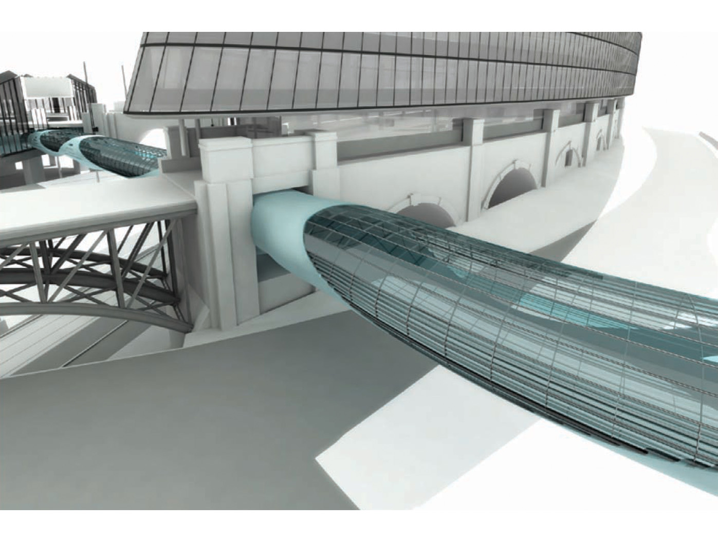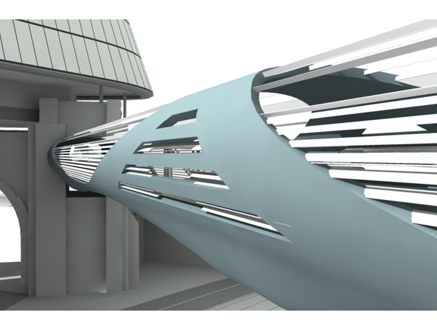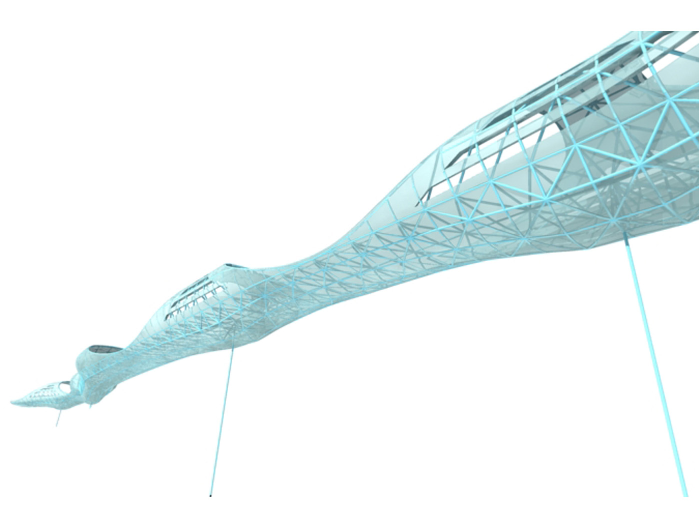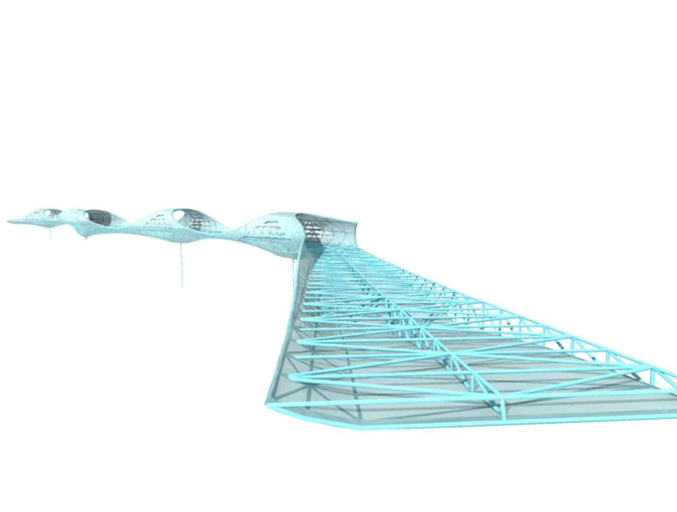 Inmitten einer von Verkehrsadern durchzogenen Landschaft entsteht der Skywalk als elegante Lösung für eine zunächst rein funktionale Aufgabe: das Verbinden von Orten. Die Architektur antwortet auf die Herausforderung des Ortes mit einer dynamischen Formensprache, die sich aus dem Dialog mit den bestehenden Bewegungslinien ent- wickelt. Mehr als nur eine über- querungshilfe wird der Skywalk zu einer Plattform, die den besonderen Reiz dieser urbanen Situation er- fahrbar macht, eine Inszenierung der scheinbaren Willkür des Raumes, die sich im Gestaltungsprozess zu einer eigenständigen ästhetik verdichtet.