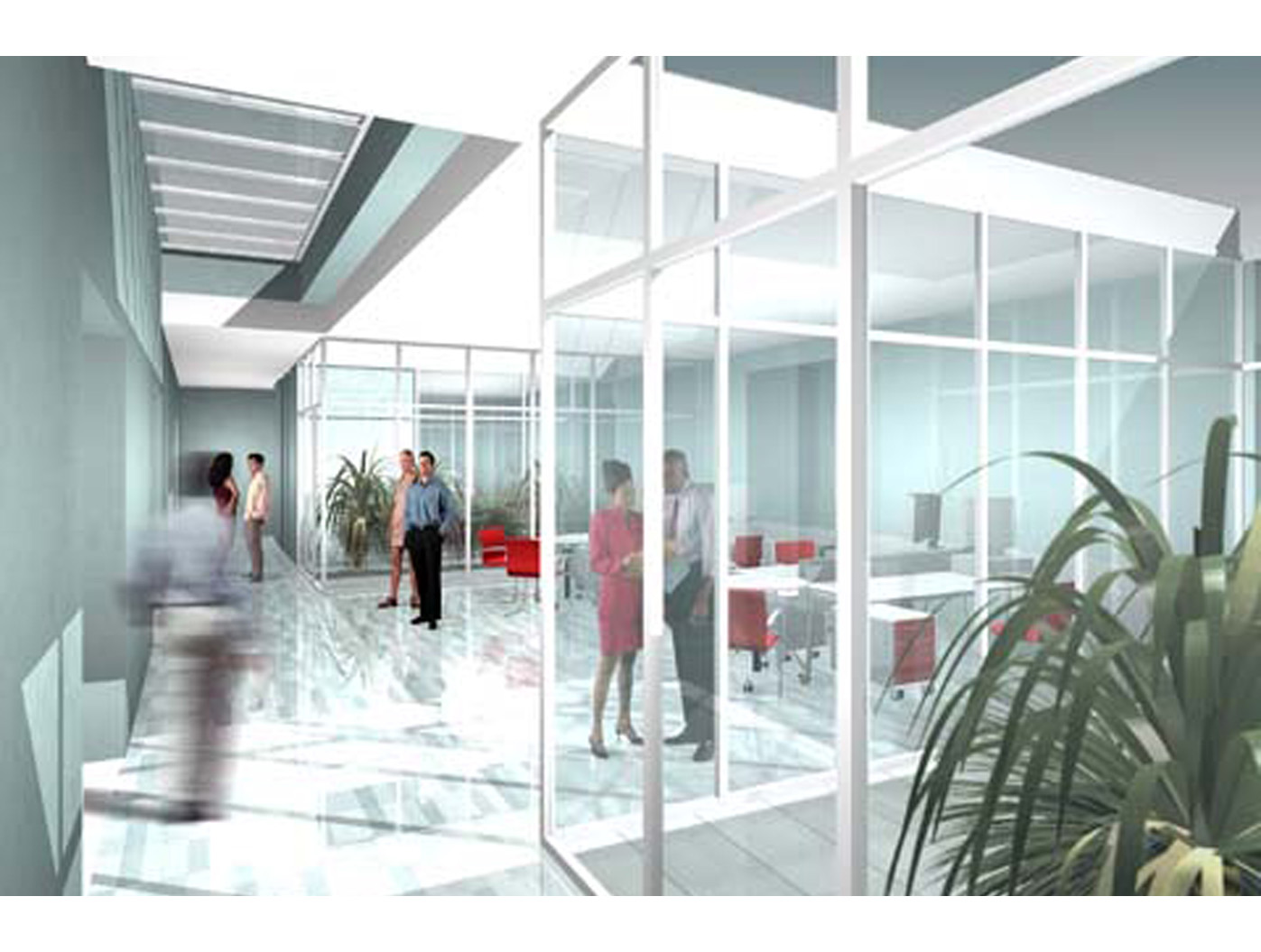 Der traditionsreiche Hauteingang am Ring bleibt als identitätsstif- tendes Portal erhalten. Eine inte- grierte Sicherheitsschleuse hinter der historischen Fassade verbindet modernen Standard mit respekt- vollem Umgang. Besucher werden über einen kontrollierten Security-Bereich in eine vorgelagerte Warte- halle geführt.