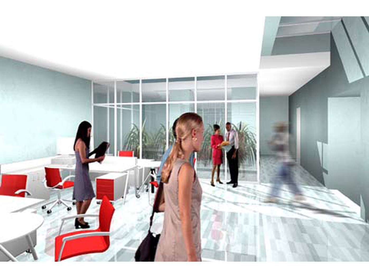 An der Rückseite entsteht eine durchgängige Versorgungsachse, funktional als Logistikzone und Fluchtweg für die neue Erschlies- sung, doch diskret in der Material- isierung.