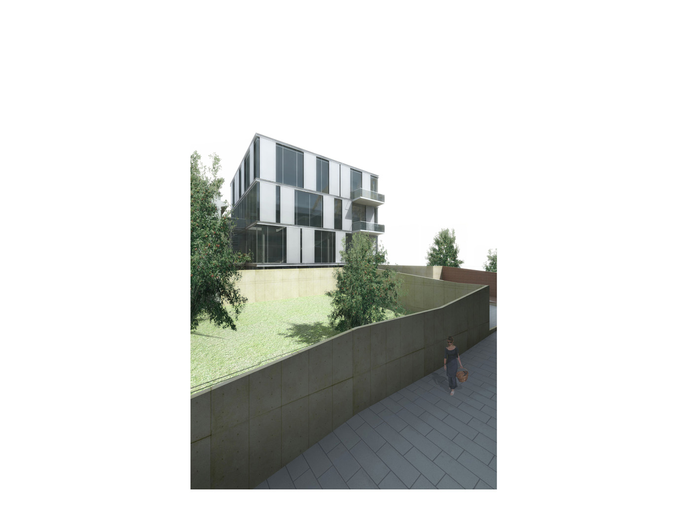 Zwei präzise geschnittene Baukör- per, ein Kubus und ein Quadrat, definieren dieses multifunktionale Ensemble. Die klare Geometrie schaf- ft Identität im städtischen Kontext, während die Materialität (Sicht- beton mit strukturierten Ober- flächen) eine warme Präsenz ver- mittelt.