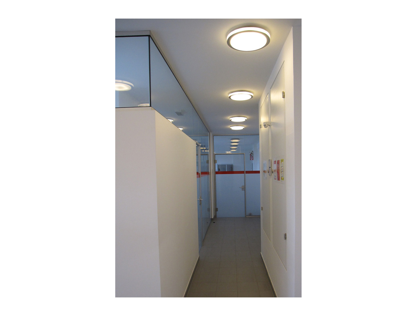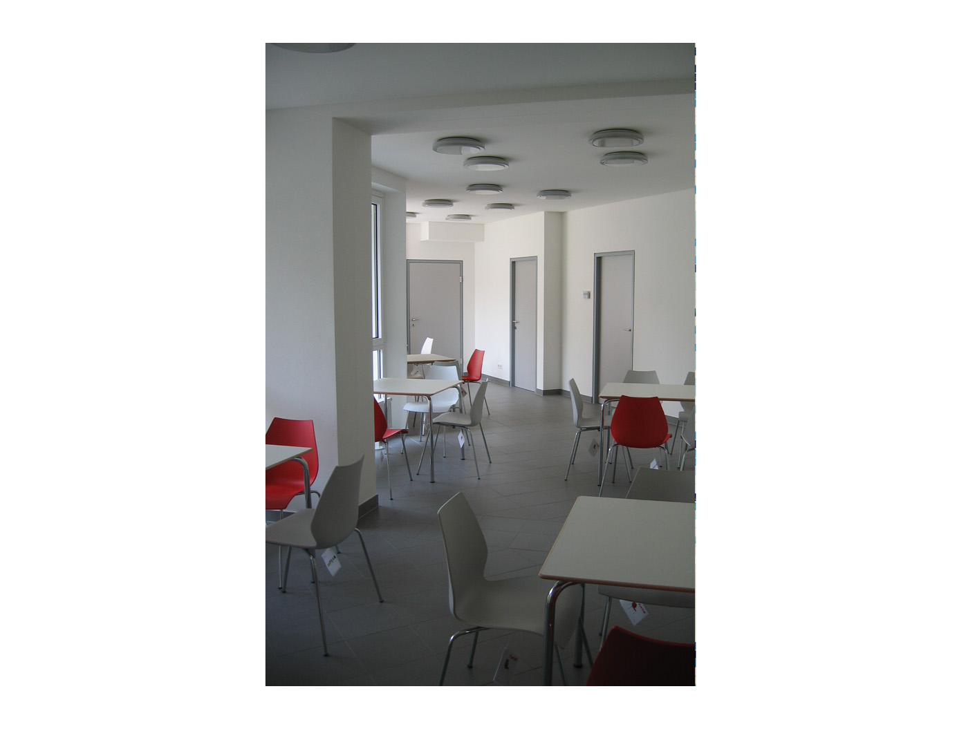 Ein angenehmes Raumklima steht im Mittelpunkt der Gestaltung, unter- stützt durch durchdachte Belich- tung und Belüftung. Das struk- turierte Konzept gewährleistet eine konsistente Anwendung an allen Standorten und schafft so eine wiedererkennbare Arbeitsumgebung. Klare Linien und funktionale Zo- nierungen fördern die Effizienz, während hochwertige Materialien und eine ruhige Farbgebung eine professionelle Atmosphäre schaf- fen. Die Innenräume sind hell und offen gestaltet, mit flexiblen Ar- beitsbereichen, die sich an die Be- dürfnisse der Mitarbeiter anpassen.