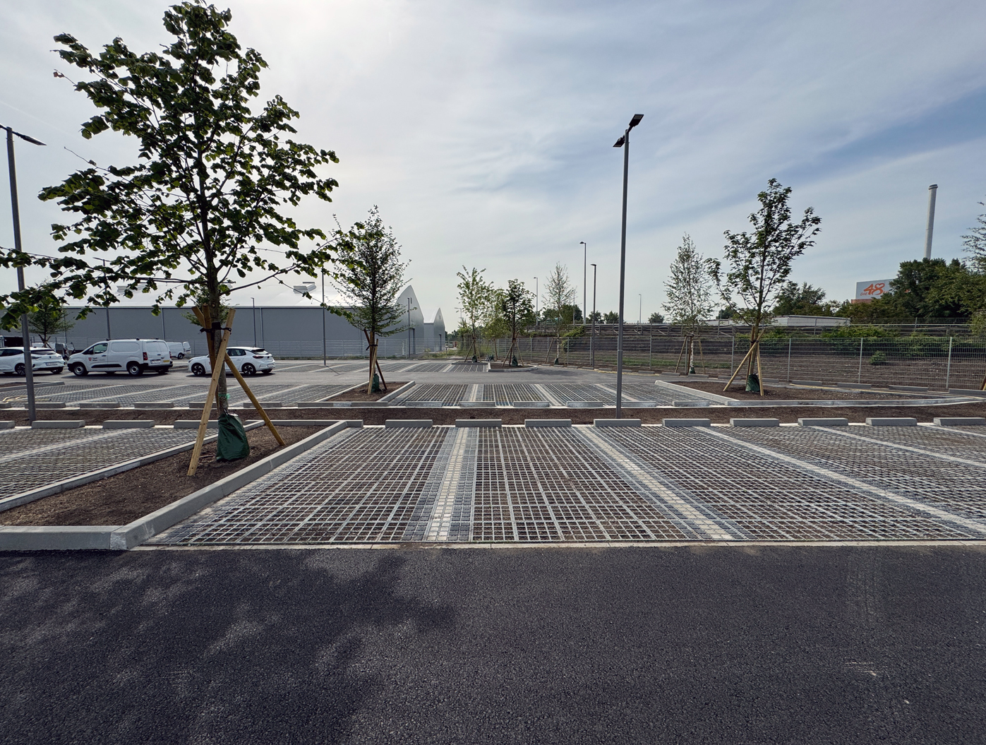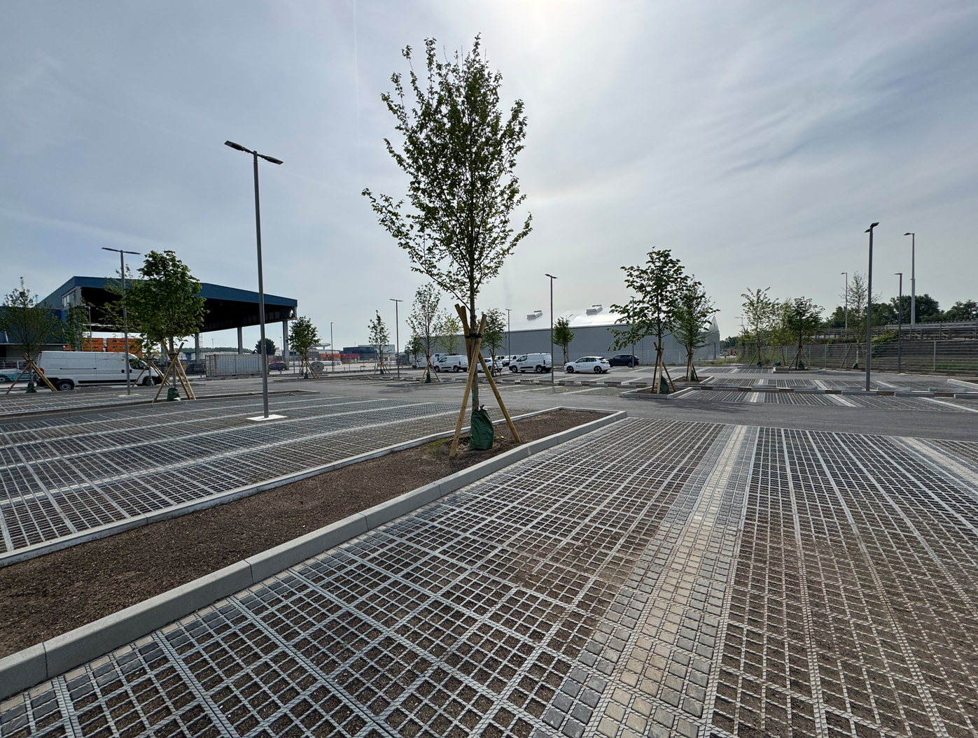 Das Projekt überzeugt durch eine klare architektonische Gestaltung, die Funktionalität mit ökologischer Verantwortung verbindet. Die grosszügige Parkplatzanlage fügt sich harmonisch in das städtische Umfeld ein und setzt mit ihrer durchdachten Materialität sowie begrünten Flächen dezente Akzente.
