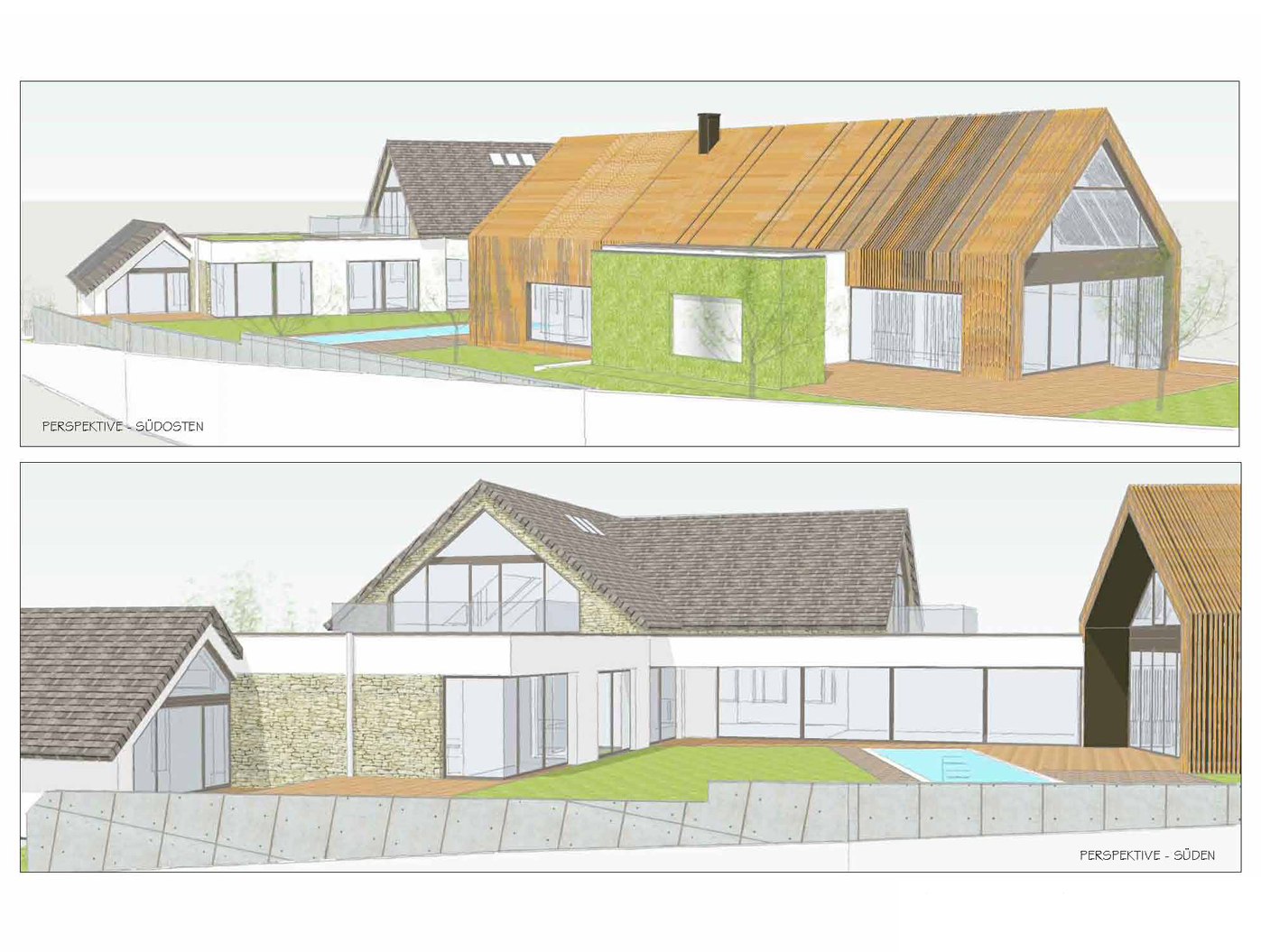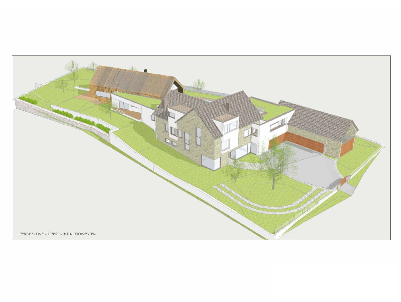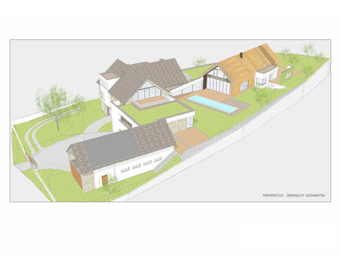 Besonderes Highlight ist der eigene Wellnessbereich, der sowohl im Innen- als auch im Aussenbereich seine Entsprechung findet. Die grosszügige Gartenanlage wurde als natürliche Erweiterung der Wohnräume konzipiert und bietet vielfältige Möglichkeiten der Ent- spannung und Erholung. Eine geräumige Garage komplettiert das Ensemble und unterstreicht den durchdachten Gesamtentwurf. Die Architektur spielt gekonnt mit Kontrasten, die massive Steinoptik der Fassade korrespondiert mit den leichten Glasflächen, während die warme Holzverkleidung des Well- nessbereichs für Behaglichkeit sorgt.